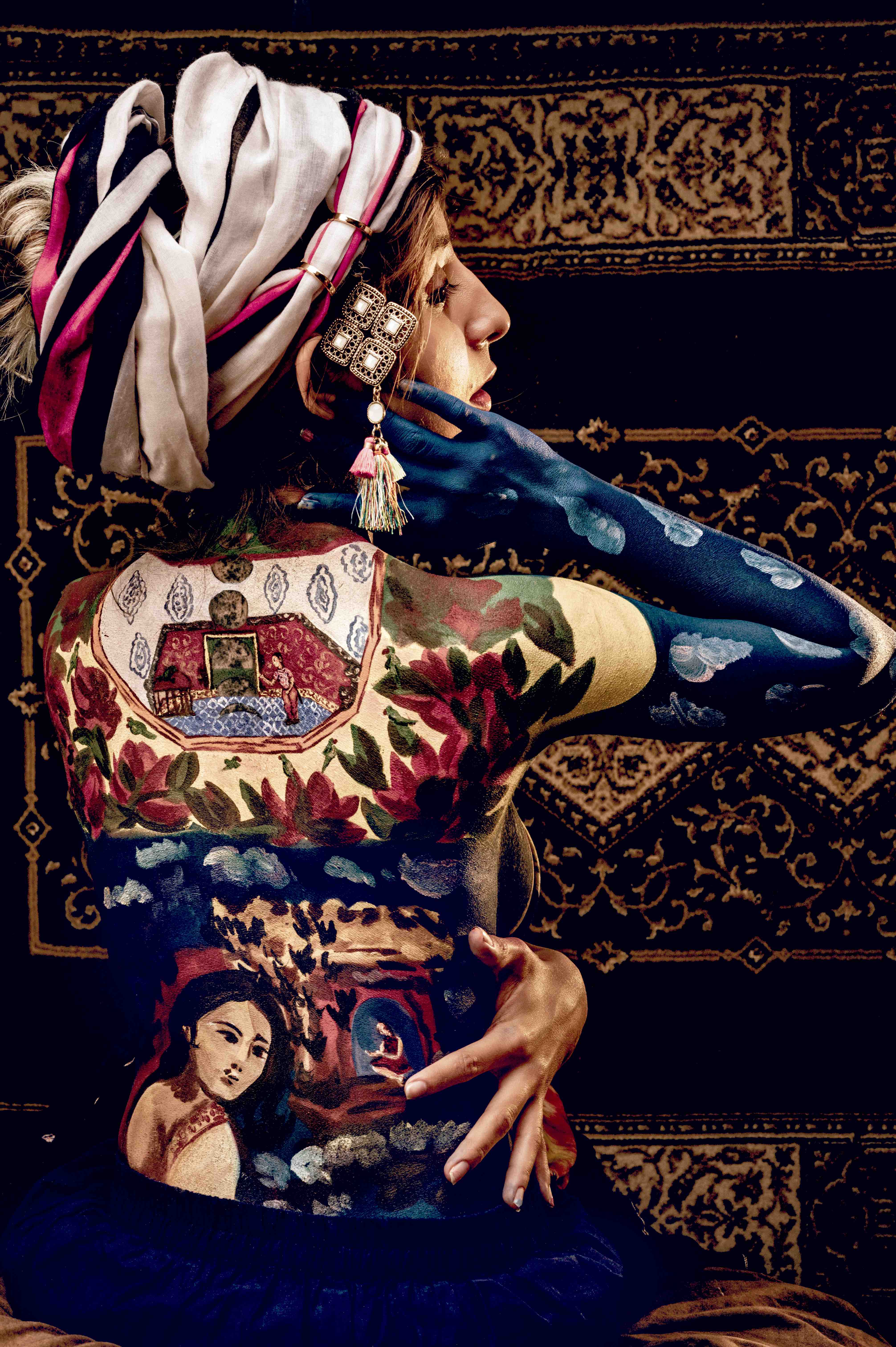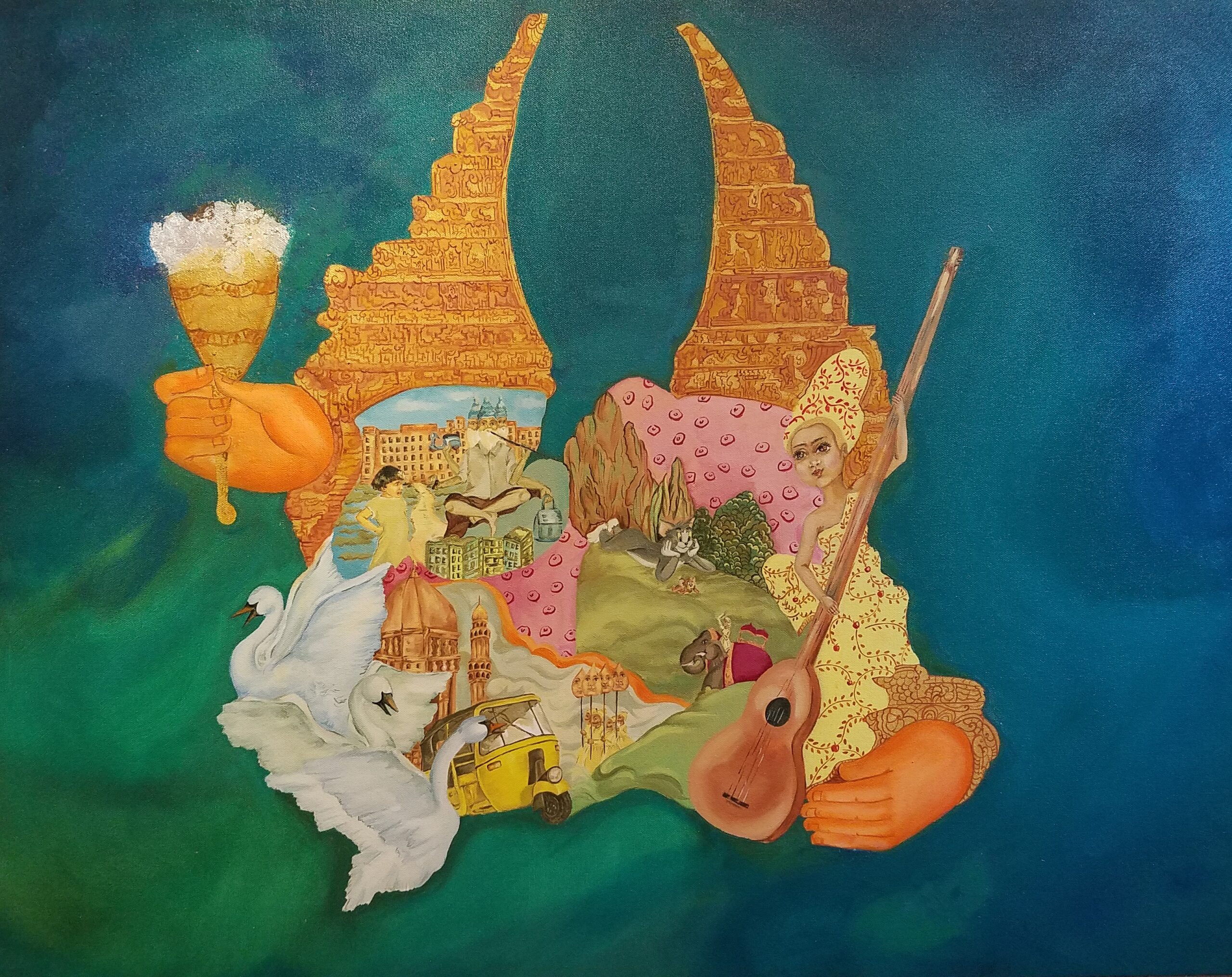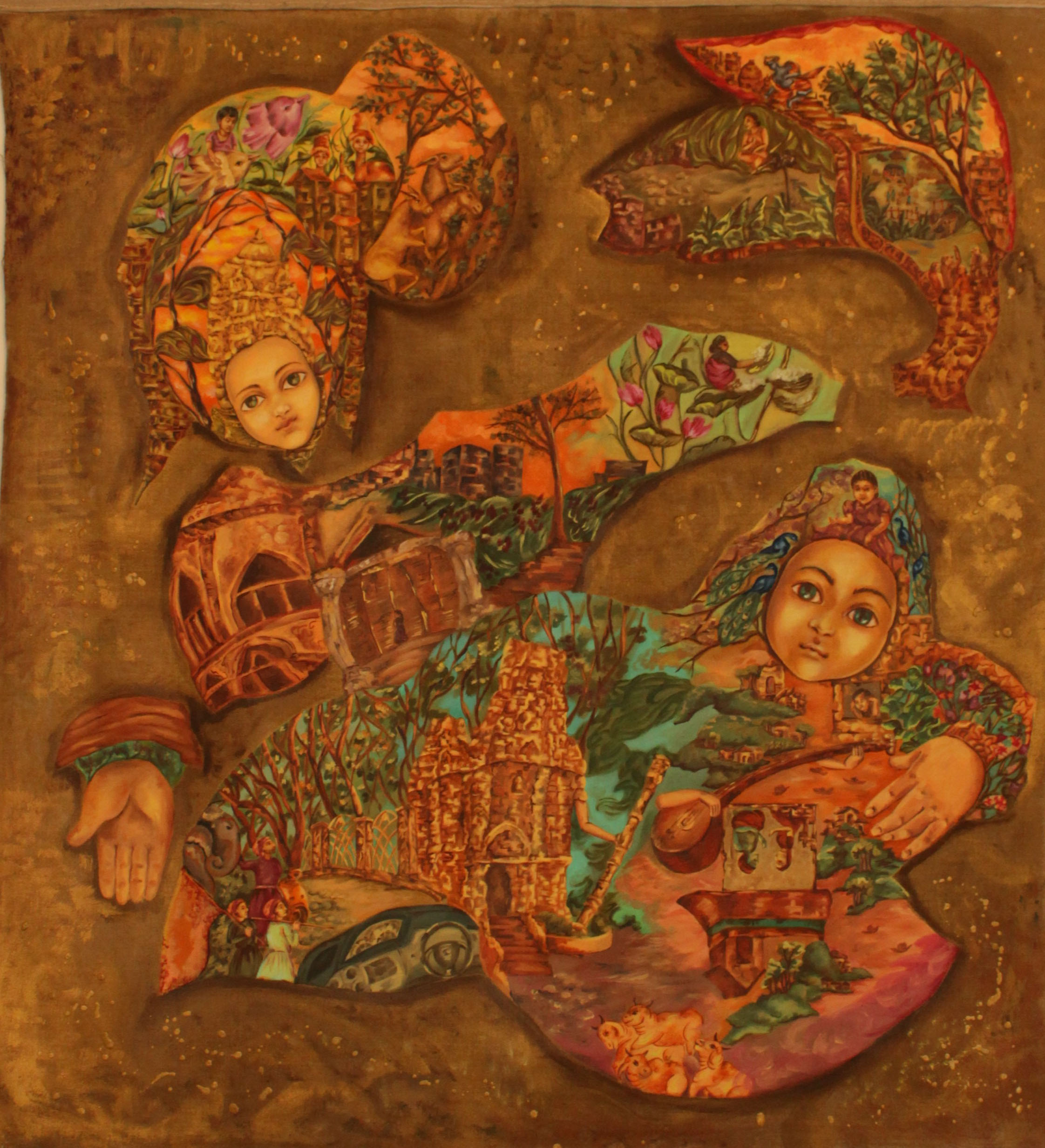 "The artist's choice to paint the body, impose a narrative that explores the feminine in man, woman, plant, and animal, to commend the essence of the female, her myriad emotions, sensations and passions are more of a self-search" - Avani Rao Gandra Artist/Curator/Writer