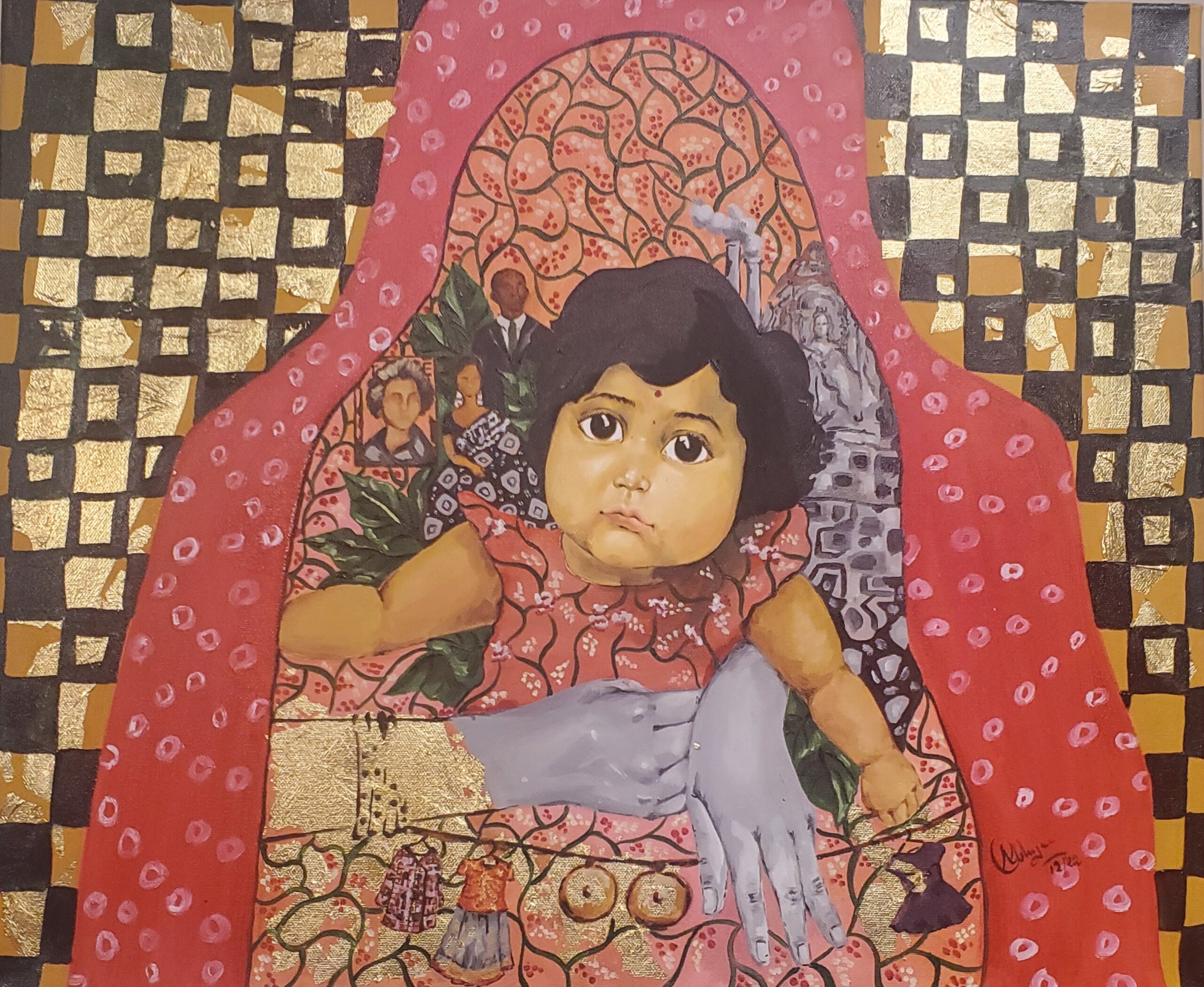 "Abhijna picked the feminine quality as a metaphor in her works to express herself. The intermingled influences of the contemporary culture from her experiences in the US, and the culture from back home where she was raised." -Lakshmi Reddy Artist/Professor